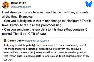 There was a discussion recently on Bluesky about reproducible data analysis pipelines.